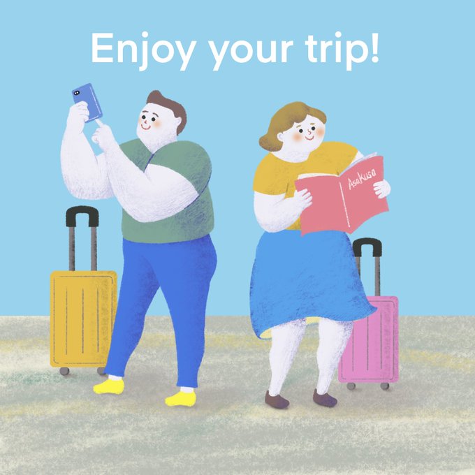【Enjoy your trip】 2022年6月から海外観光客の入国制限緩和、7月からは県民割など賑わってきて嬉しいです😄旅行をする時のワクワクした気分を描きました。イラストレーターズ通信にアップしています!ご高覧お願いいたします! #イラスト #イラ通 #illustration illustrators.jp/profile.php?id…