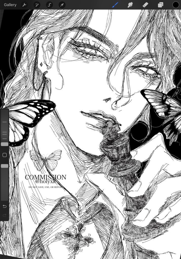 เส้นบางๆ ค่อยๆ สานทับกับแบบขีดต่อขีด ซูมดูแล้วจะรู้สึกว่าเส้นมันรกๆ ยุ่งๆ twitter.com/asporin05/stat…