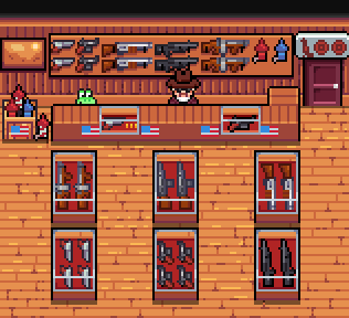 A small gun shop, also sells some fireworks for the 4th of July. #pixelart #ドット絵