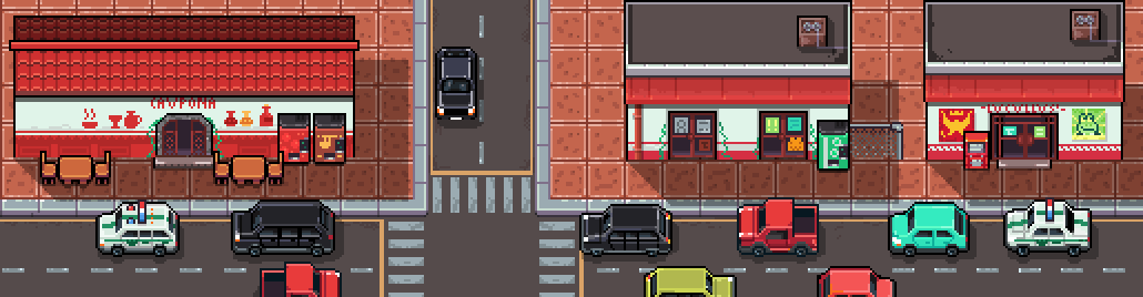 Plenty of stuff to do in this part of town. #pixelart #pixelartist #aseprite #ドット絵
