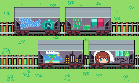 Looks like these lone boxcars got a bit of spray paint in them. #pixelart #ドット絵