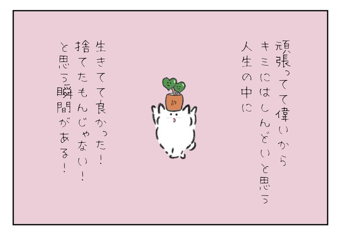 頑張ってて偉いからキミにはしんどいと思う人生の中に「生きてて良かったー!」「捨てたもんじゃないなー!」って思う瞬間があるよ!