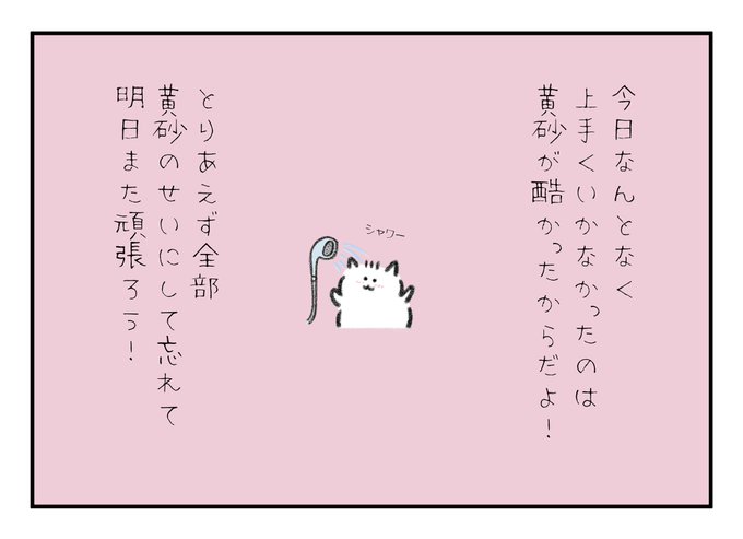 今日上手くいかなかったのは黄砂が酷かったからだよ!とりあえず全部黄砂のせいにして忘れて明日また頑張ろう!