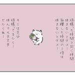 249 1392 頑張った時間と同じ時間休まないとダメ!無理した時は無理した時間の2倍は休まないとダメ!キミは充分頑張ってるから!休んでも大丈夫だからね! 23/04/20 20:23