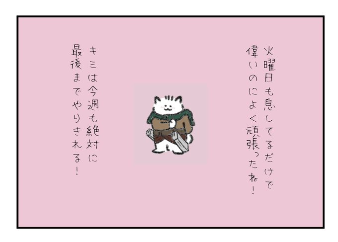 火曜日も息してるだけで偉いのによく頑張ったね!キミは今週も絶対に最後までやりきれる!