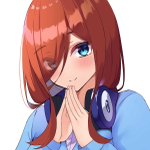 🍀「三玖〜っ♡」 🎧「…そんなにくっつかないで。//」 #五等分の花嫁 #中野三玖 #中野四葉
