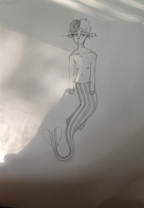 Here’s today! Punk with a little zebrafish. I was gonna put little spike bracelets but i don’t have my special eraser with me so I didn’t. But maybe next time — #mermay2020 #mermay #punk #zebrafish #mermaid #fish