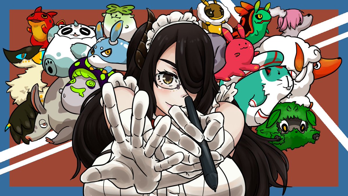 今伊東ライフ先生が視聴者が考えた設定でモンスターデザインする配信してるから全人類見てくれ。 #絵東ライフ #イトモン ごめんなさい、そばかす忘れてたから上げなおします。