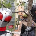 本日のお写真!待ち合わせ場所ですぐに目についた仮面ライダーXにはテンション上がった!私のマスクと同じやつを顎にされてる方は一緒にとるしかない!しめ鯖さんとご友人二人は尊かったです。 #川崎ハロウィン