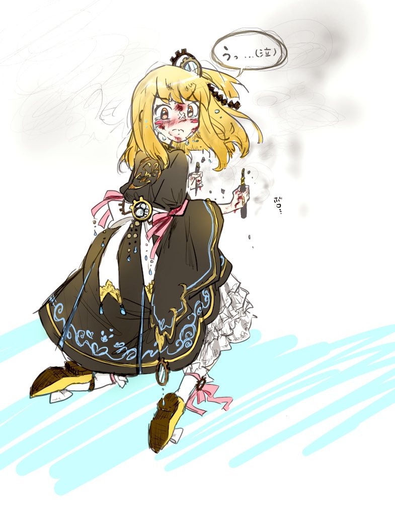 修行中のサレーネは定期発表会で杖を折ってしまい泣くのを堪えています。 #パズドライラスト
