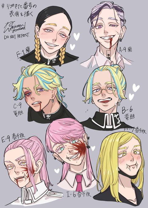 # リプ来た番号の表情を描く リプ、マロありがとうございました!!! ※流血、暴力注意