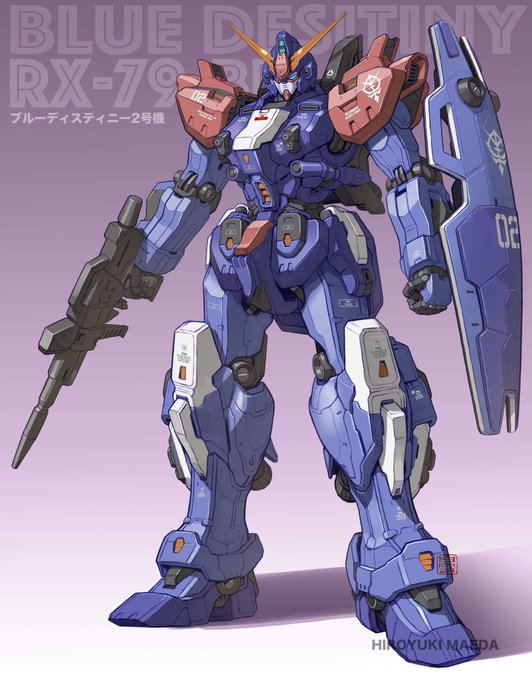ブルーディスティニー2号機のアレンジデザインが出来ました。レッドショルダーを描きたくて〜。マスクがホワイトの方がガンダムっぽいですね。色替えで3号機も出来るな。#ブルーディスティニー #機動戦士ガンダム外伝 #exam #ファンアート #レッドショルダー #青い機体 #ガンダム好き