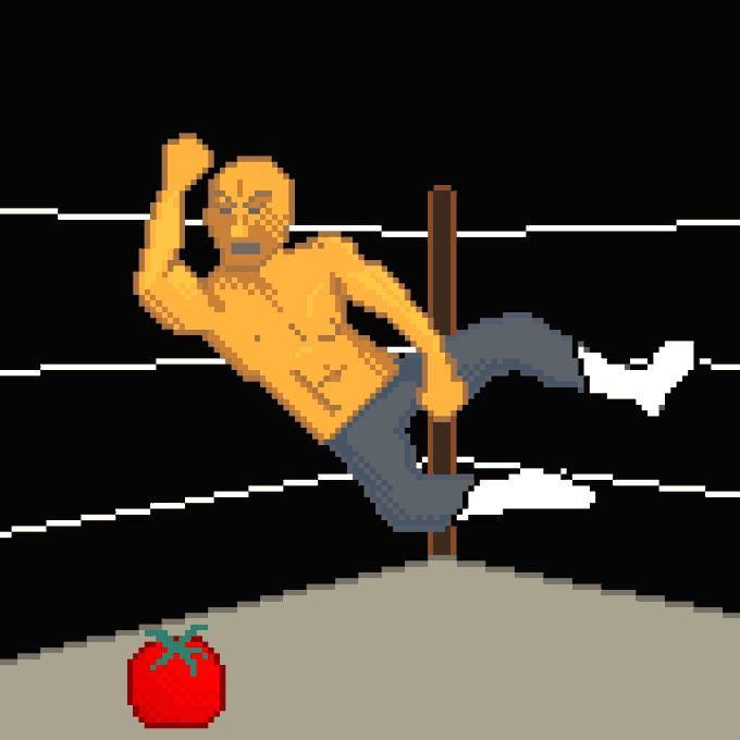 Today's @Pixel_Dailies theme, wrestler! Took me longer than expected, so please accept a token tomato as a rival and covid-style number of spectators #pixel_dailies #ドット絵 #pixelart #wrestler #tomatopuree