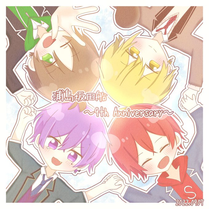 9周年おめでとうございます🎊 浦島坂田船皆さんの活動をこれから先も応援してます!!素敵な航海がずっと続きますように💚💜❤💛 #浦島坂田船9周年 #浦島坂田船結成9周年 #うらたぬ王国の美術館 #しまーと #坂田です #センラの絵ぇやん