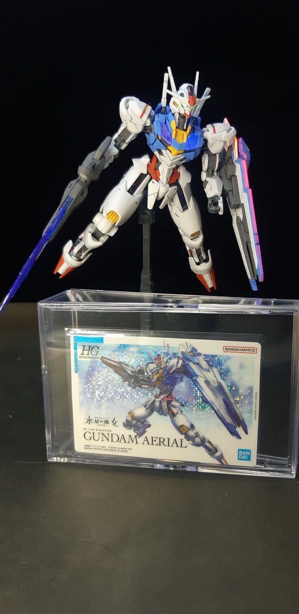 ガンプラのイベント展示みたいでいい感じになった☺ カードのディスプレイケースは100均で購入しました。 #ガンダム #ガンプラ #ガンプラ好きと繋がりたい #ガンプラの画像貼るとRTされると聞いて #ガンプラは自由だ #水星の魔女