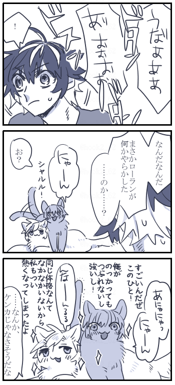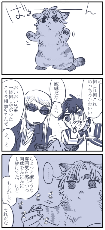 お題箱よりポカニキとネコチャン > オリジナル混じりのお題でも大丈夫でしょうか? ジャガーマンのナマモノな謎のネコジャガータイガーとタマモキャットのナマモ… #odaibako_hook2_62 odaibako.net/detail/request… 長らくお待たせしました……なんかやらかしたんやろな感がすごい