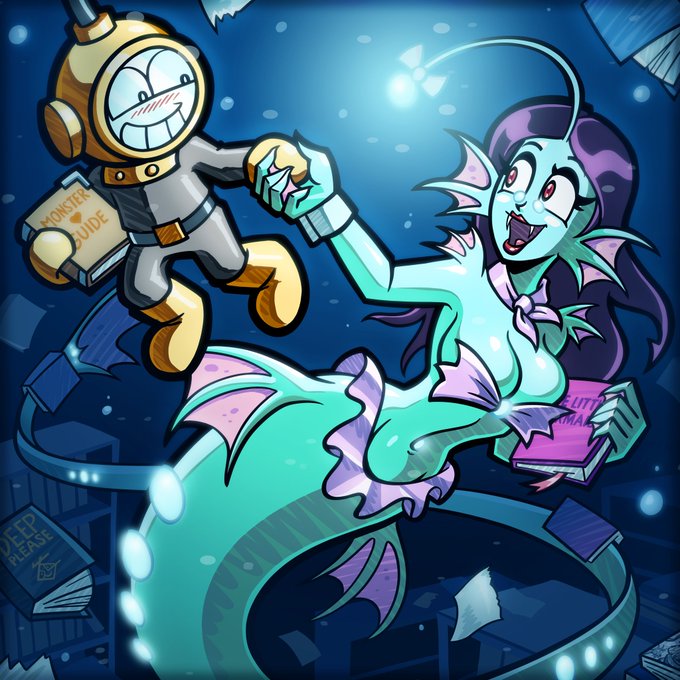 "Promise me you'll return?" Every day Angie awaits Diver Dill's return so they can read books together in her lonely deep sea library. #hooksnfangs #mermay2020 #mermay #monstergirls #cutiesaturday