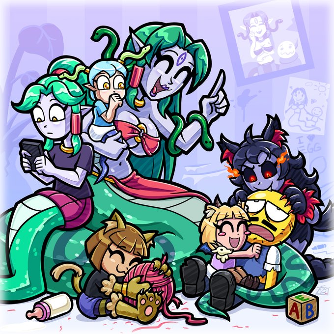 "Darling, can we have one more?" Tyson took Lady Echidna out for a date and it was love at first sight for her. They quickly formed a relationship and now they're parents of one. two.. three...? and more to come? #魔物娘図鑑二次 #MonsterGirlEncyclopedia