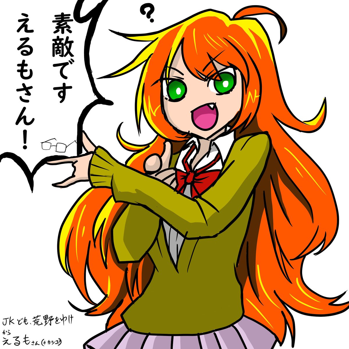 @tokitadesu 今日イラスト企画があって勝手にセーラームーンのポーズのえるもさん描きました よかったらもらってください