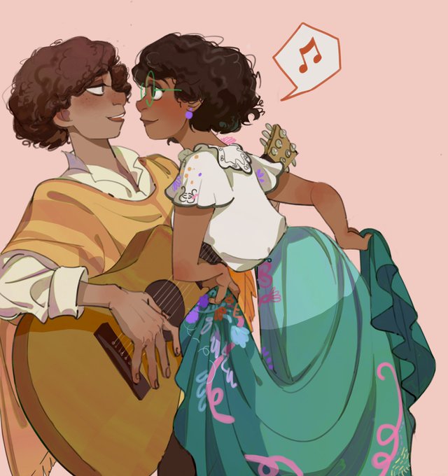 Encanto 千位关注的🦋🦎cp向摸鱼~大家好热情,我在国内的社交媒体上都没有过这种待遇😌 接着前一张camilo和mirabel的🐯年贺图的小后续