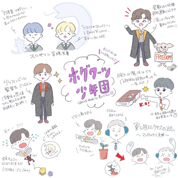 51 597 もしバンタンがホグワーツにいたら🎨 (元ネタ:墓たろうニム@hakatarosann ) #btsfanart 22/02/22 17:31