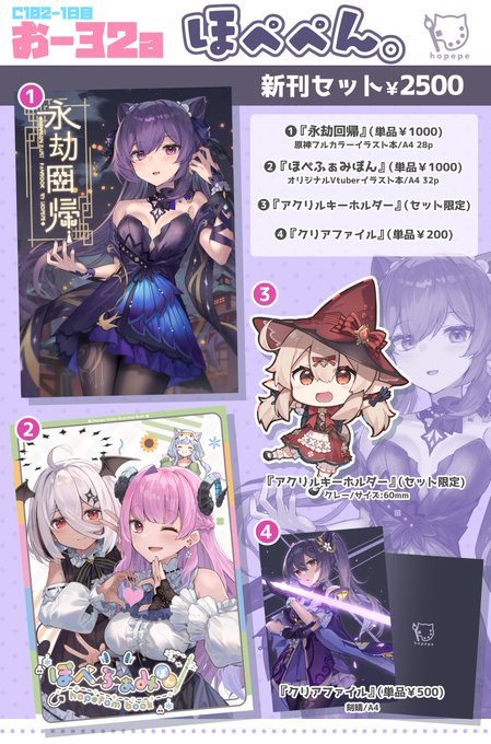 夏コミ新刊の原神本「永劫回帰」とうちの子本「ほぺふぁみぼん」の委託が始まりました~! うちの子と原神のイラストそれぞれ沢山収録しておりますのでよろしくお願いいたします~ ■永劫回帰 melonbooks.co.jp/detail/detail.… ■ほぺふぁみぼん melonbooks.co.jp/detail/detail.…