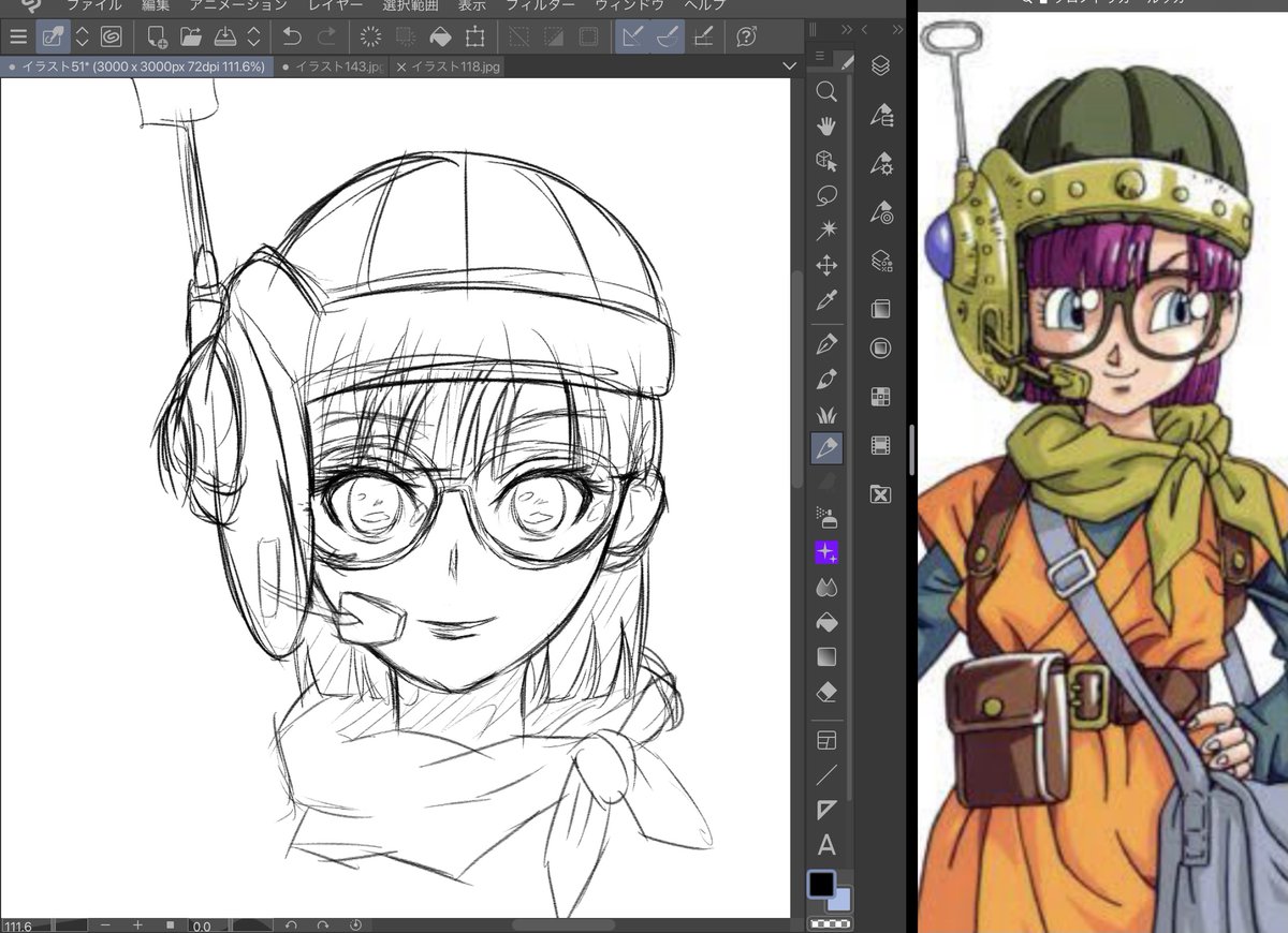 4 26 クロノトリガーのルッカでも描こうかなどと試し描きしつつ。鳥山絵はもう鳥山絵で完成しきってるから自分の絵柄にするとキャラの魅力が半減どころじゃねーんだわさ_(:3」z)_ 21/02/09 21:27