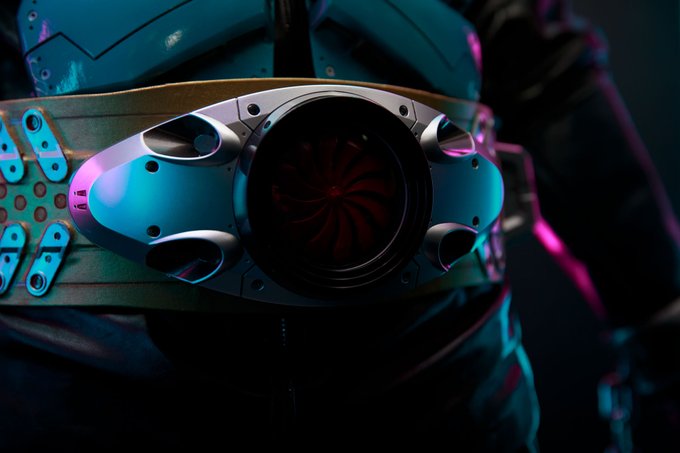 『開閉式安全装置付後期改良型・変身ベルトタイフーン』 〜 Cyberpunk:Edgerunnersっぽいネオンみを添えて 〜 #コスプレ #仮面ライダー第3号 #シン・仮面ライダー #cosplay #仮面ライダー3号 #ガワコス