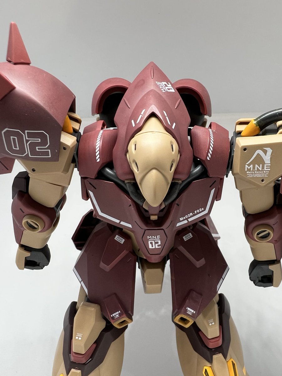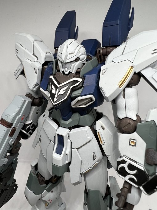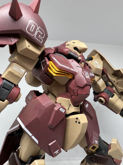 HGUC 1/144 メッサーF02型 80% ほぼ塗装、合わせ目消し、微調整完了🖌️あとは細かい塗装にデカールなどを。 キット自体の出来は満足✨塗装派には頭部、動力パイプ、武器の塗装が細かく大変かも😅 . . #ガンプラ好きと繋がりたい #ガンプラの画像貼るとRTされると聞いて #閃光のハサウェイ . .