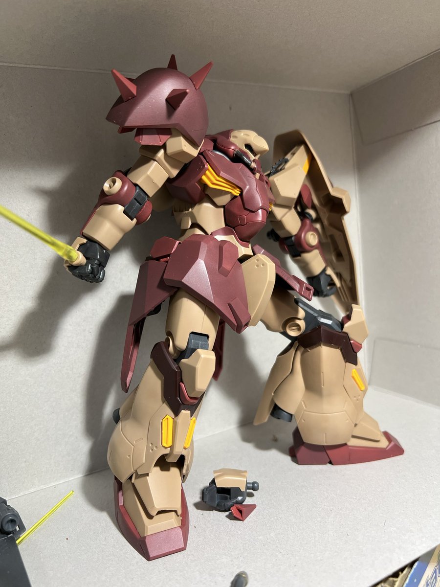 HG 1/144 デミバーディング 完成 子供からの誕プレだったので、少しだけ丁寧に作成😆肉抜き穴も埋めて、オリジナルに全塗装🖌️ 武器の使い方が違うのは弾切れって事で😆 . #ガンプラの画像貼るとRTされると聞いて #ガンプラ好きとつながりたい #水星の魔女 #デミバーディング .