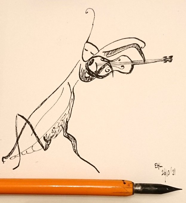 Good evening @royalacademy and all! May I introduce you to the mantis who played violin 🎻🖋 #RAdailydoodle #inktober2021day26 #ink #Inktober #keinekunstklasse