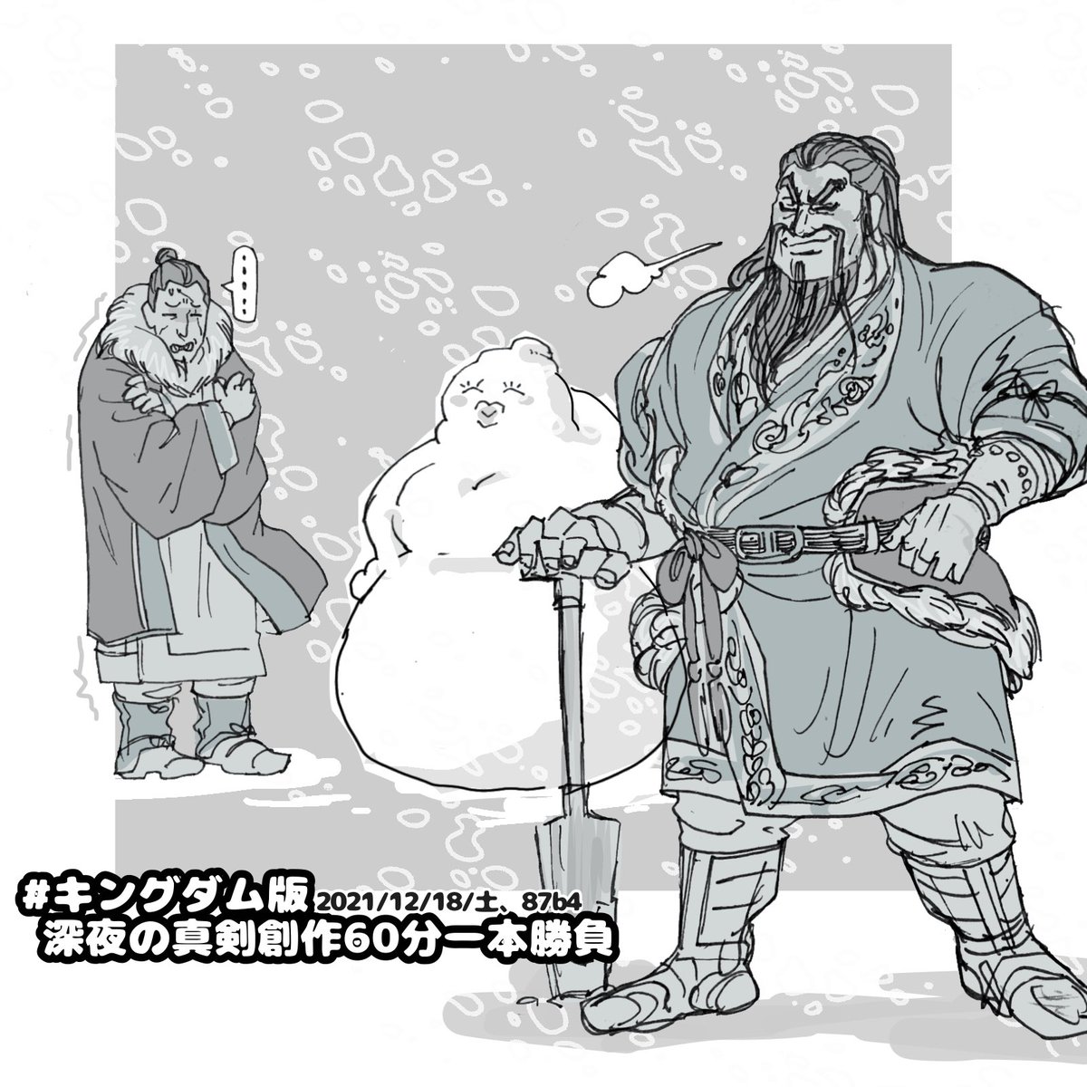 #キングダム版深夜の真剣創作60分一本勝負 ゆきだるま+雪降る中のダムキャラにて凱孟将軍と軍師荀早にて(+15min)