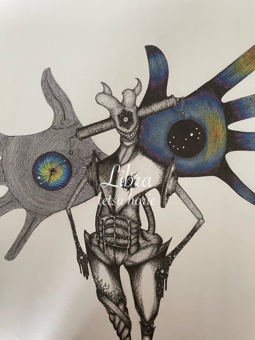 実はこの作品両翼の円の中にそれぞれ乙女座と蠍座を描いてる 因みに俺が天秤座 #ペン画 #イラスト