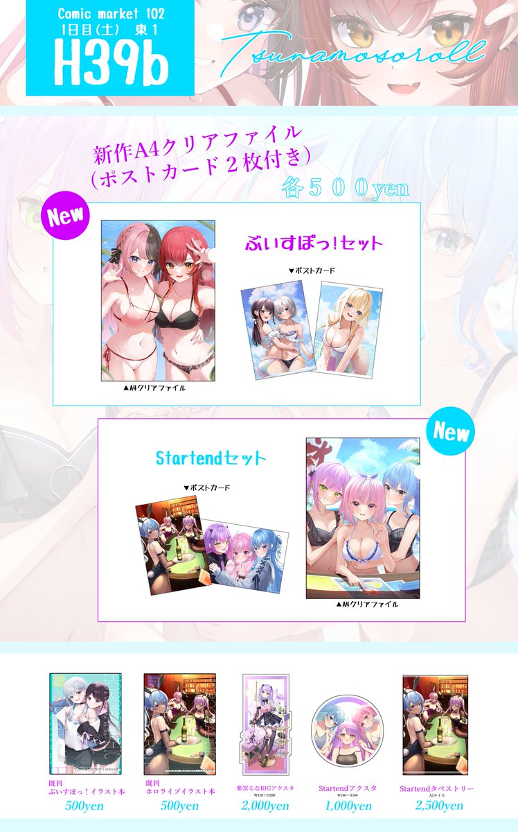 \当/ あなたのサークル「つなもそろーる」は、コミックマーケット102で「土曜日 東地区 “H” ブロック 39b」に配置されました!コミケWebカタログにてサークル情報ページ公開中です! webcatalog.circle.ms/Perma/Circle/1… #C102WebCatalog