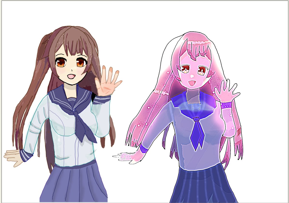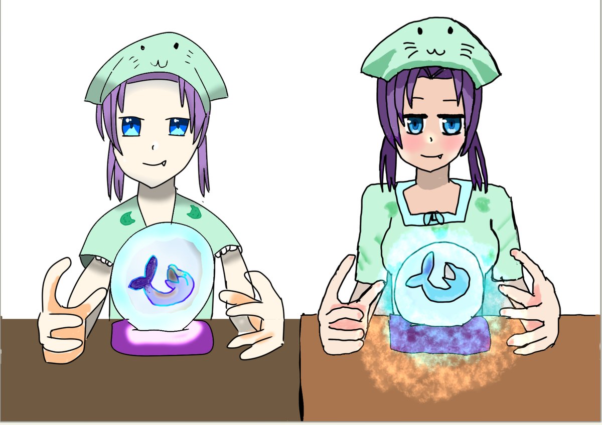 自作カードゲームの天月鈴音のレタッチイラストです。 右が修正前です。 #イラスト