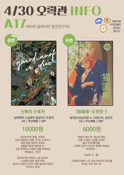 🍒RT감사합니다❤️ 4월 30일(일) 오락관 A17 <제3회 샬레이안 동인연구회>부스 인포입니다~ 남비에라 일상개그 신간트윈지와 이것저것 재고 소량 들고갑니다~! 행사날 뵈어요~~🥰 책 샘플은 하단의 링크에서 보실 수 있습니다. horu9797.postype.com/post/14439205