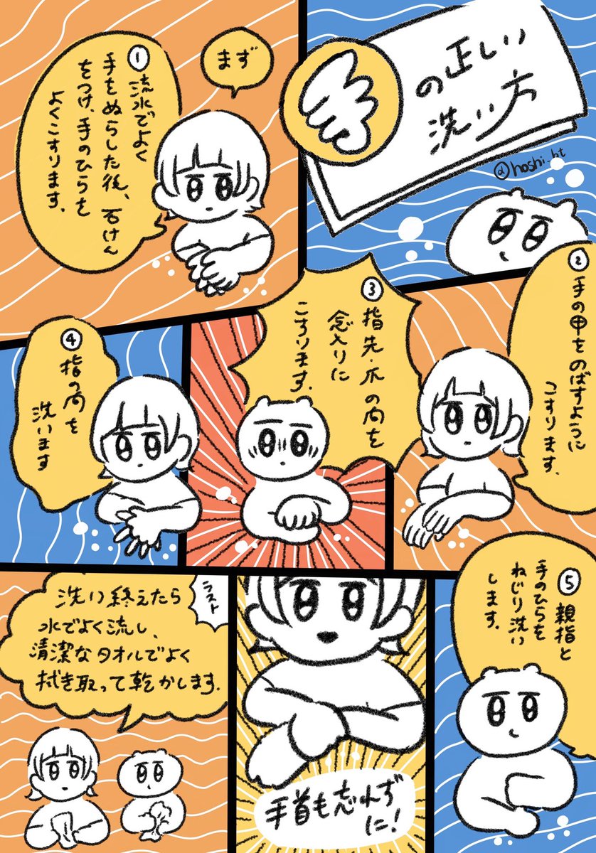 【🧼🤲手洗いの仕方🤲🧼】 手の正しい洗い方を描きました! みんなで覚えて正しく手を洗おう! (厚生労働省HPを参照) #手を洗おう #絵描きにできること #COVID19