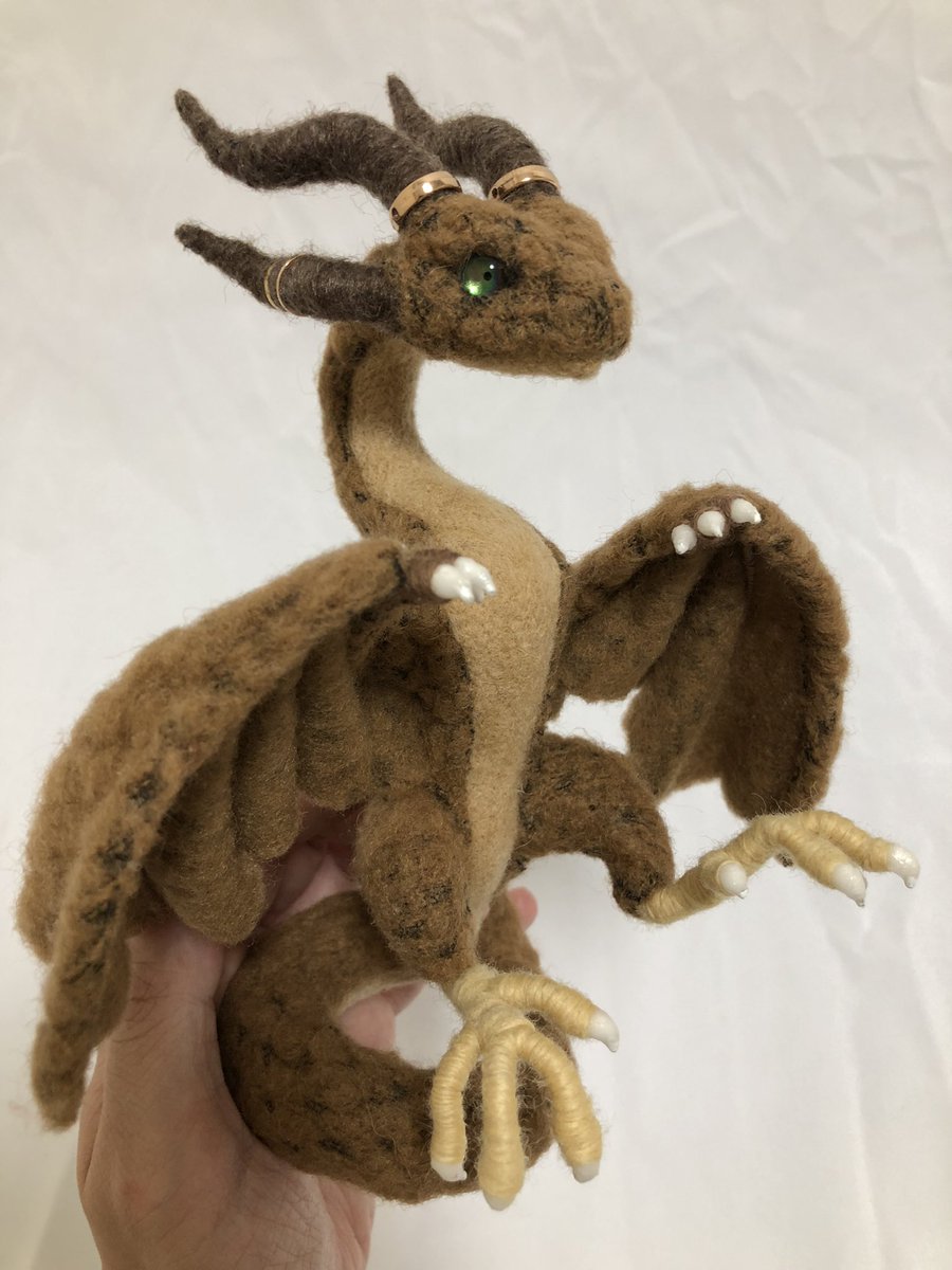 10 28 【おうち探し】 ワイバーンのおうち探しをさせて頂きます。 22,000円+着払い送料 尻尾で自立します。 翼はある程度開いたり閉じたりできます。 目は偏光グリーンで、見る角度によって色が変わります。 触り心地ふわふわです。 先着順、リプかDMにて。 #羊毛フェルト #ドラゴン #ワイバーン #竜 21/12/01 20:19