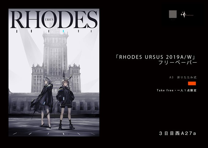 告知で失礼します。今回のコミケですが、当日は新刊がなく、フリーペーパーを先着順一人一点で無料配布致します。仕様はA3サイズの折りたたみ式ポスターです。デザインは画像の感じて、「明日方舟Arknights」のAmiyaの私服姿を描いてみました。興味がある方ぜひ会場にお越しください。( ´ ▽ ` )ノ