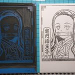 0 1 年賀状版画、11版目(11版予定) 最後は黒ですね。これをここまでの10版に重ねて完成です。 文字は……やっぱり禰の文字が難しかったです。 一応年賀状なので、全部重ねたものは元日にあげたいと思います。 #鬼滅の刃 #鬼滅の刃イラスト #竈門禰豆子 #ゴム版 #年賀状 20/12/12 12:13