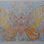 フォロワーさん100人いったら……と妄想してたら、すごくありがちな版画のネタが出来上がった。 (ゴジラVSモスラ 超全集 見ながら描きました)