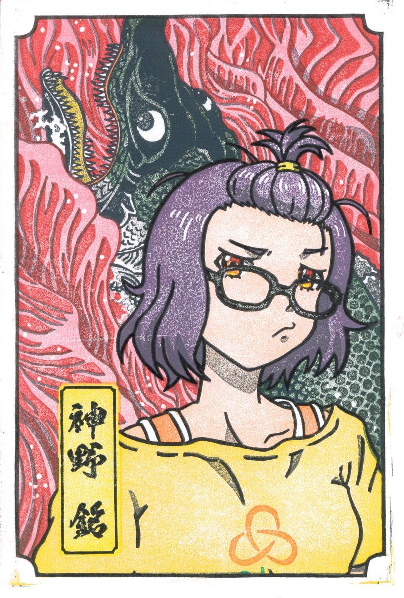 #何だっていい過去絵を掲載するチャンスだ 最近作れてないので便乗します。 ゴム版画の多版多色を作ることが多いです。ゴジラ大好き。