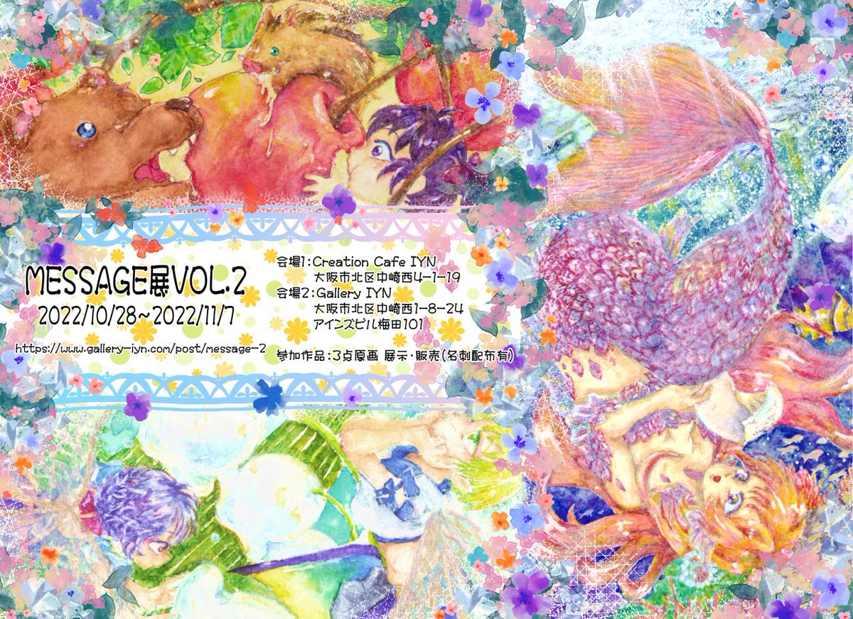 【告知】 MMESSAGE展2 2022/10/28~11/7 Gallery IYN様にて、3作品参加予定です。 作品は完成したので開催を待つばかりです~ たぁのしみぃ~ 詳細はこちらから gallery-iyn.com/post/message-2 #IYN #IYN企画に参加します #MESSAGE展2 #オリジナルイラスト #創作 #透明水彩