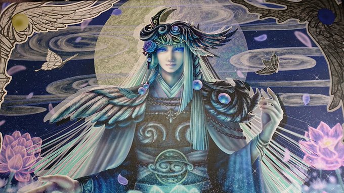 過去絵ばかり載せてるので、今の絵も載せとく👍️ 制作中「月読命~TSUKUYOMI~」 クリップスタジオで原画制作後、キャンバスへ印刷、アナログ加筆する空想絵画制作しております✨ 最近は神様を描いてます🌙 #デジタル絵画 #絵描きさんと繋がりたい #デジタルイラスト #画家 #オンラインレッスン