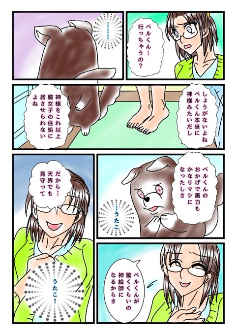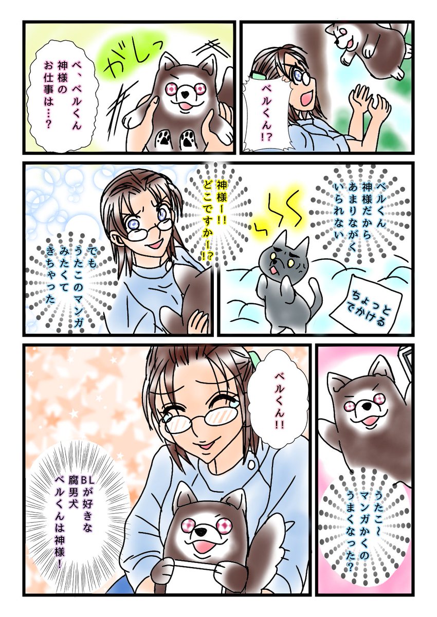 【創作】『ベルくんは神様!』第4話 1/2 フォロワーの皆様お待たせし過ぎました、すみません! 全部指だけで描いたので、いつも以上にガタガタな絵です ※続きと過去ベルくんはツリーにあります #創作の狼煙 #芸術同盟 #漫画が読めるハッシュタグ