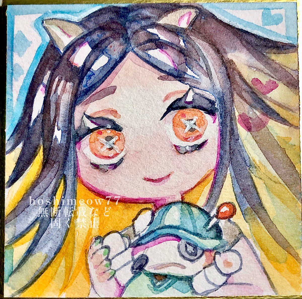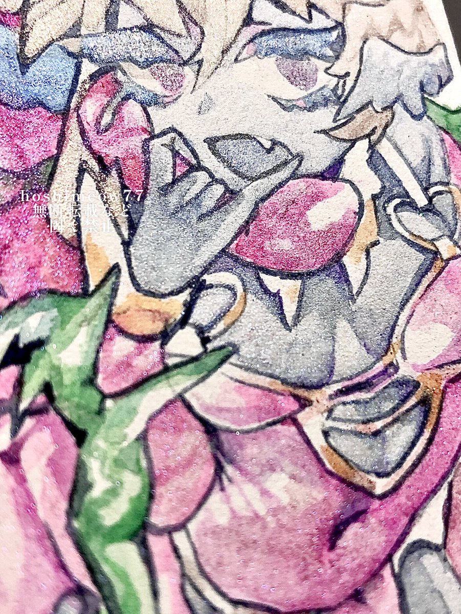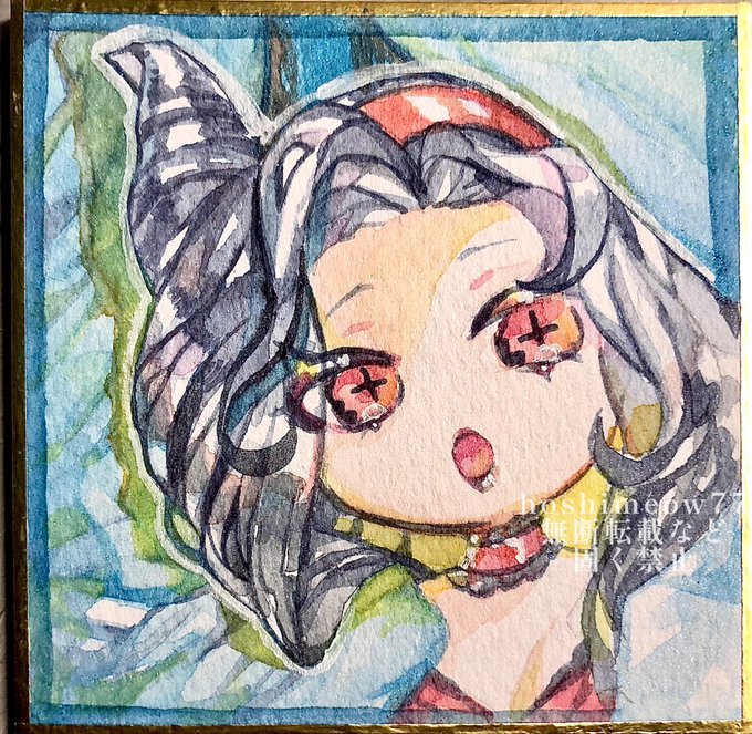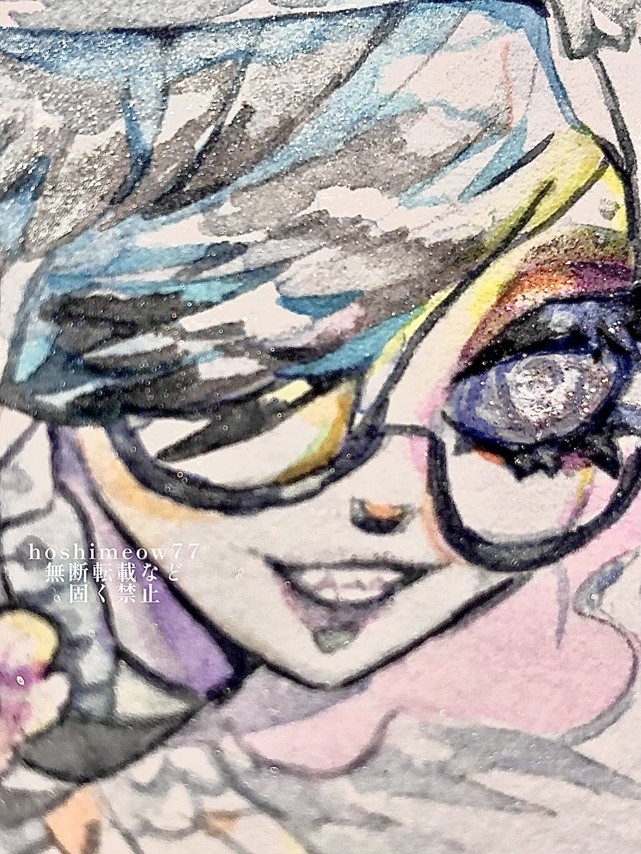 1 17 斜めに傾けた時のキラキラと髪の質感、すこです( > ·̫ <⸝⸝ᐢ )羽根としっぽ展にて展示させて頂いた作品です♡ #ほしさんはだぁれ #illustraion #イラスト #透明水彩 22/02/15 19:08
