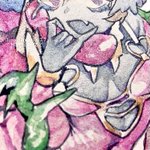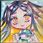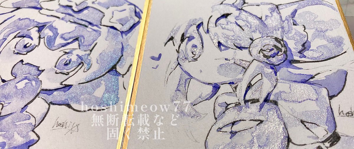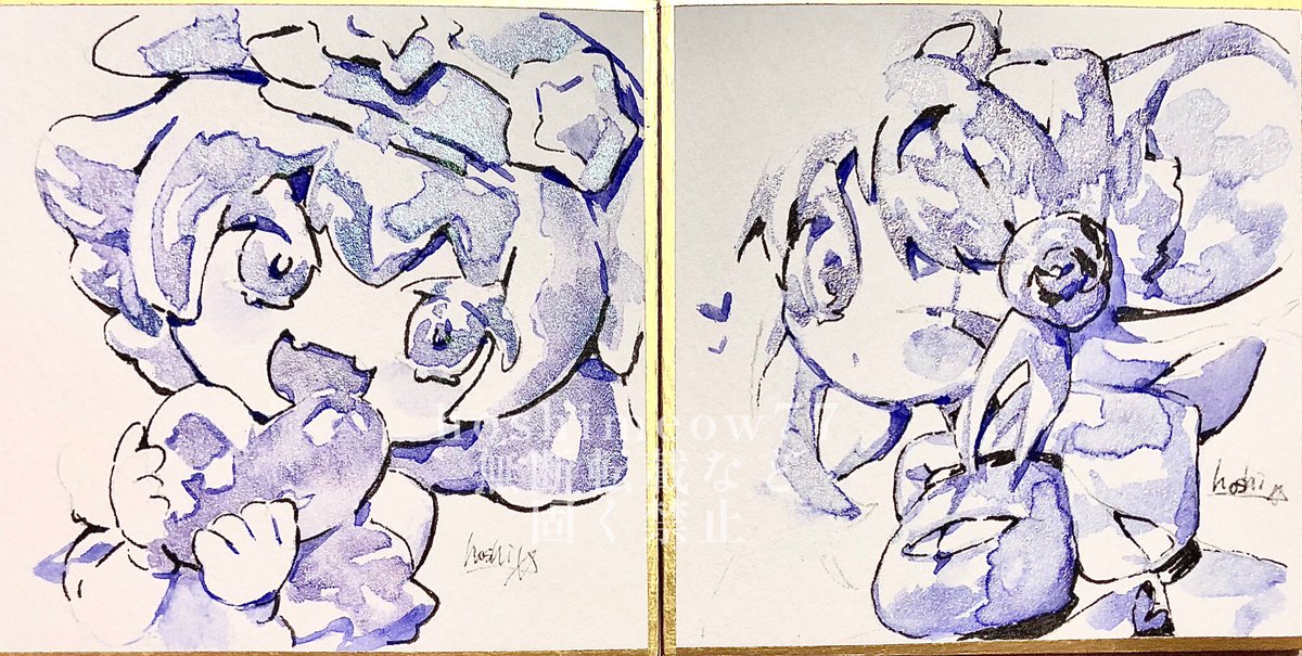 2 10 まちゃちゃんとメイユゥンちゃまです。supervision_Very Peri3色と黒ペンで描きました。傾けるとラメが凄い輝いてますね…! #illustration #イラスト #透明水彩 #ほしさんはだぁれ 22/03/09 16:29