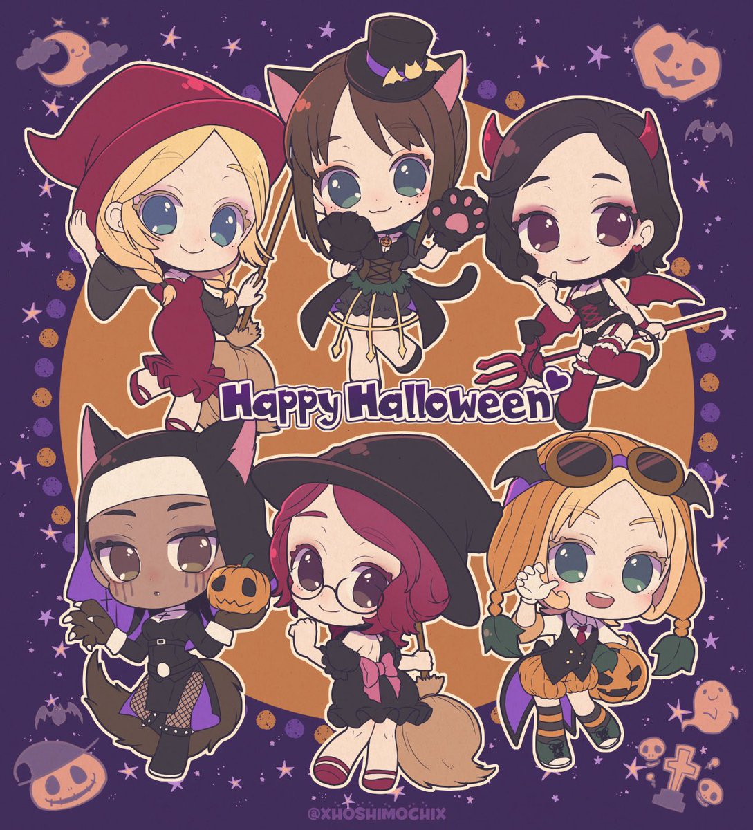 #みんなのデフォルメイラスト見せて 普段スクショと妄想ばっかですけどお絵描きするときはSDキャラ詰め込みながら描きまくってるんやでっていう。遅筆なのはキャラ大量に描いてるからなんじゃないかと最近気付き始めた🙄💭
