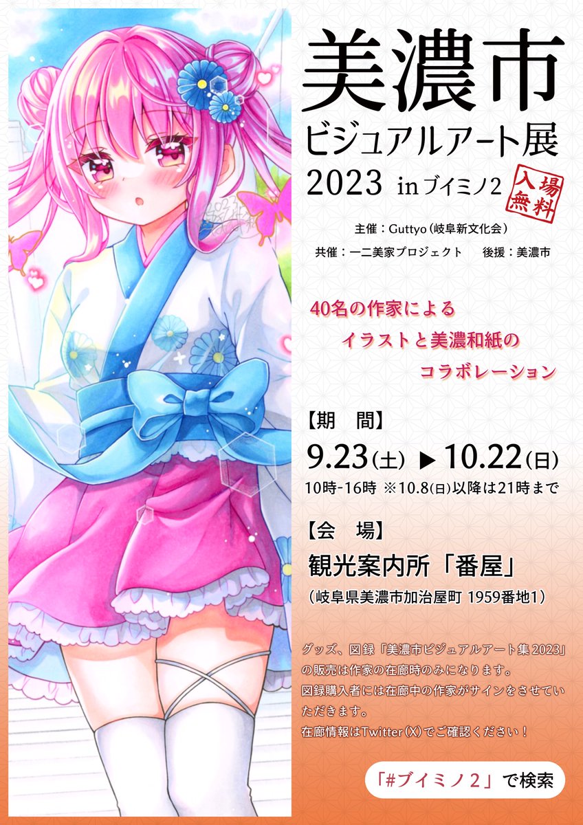 【美濃市ビジュアルアート展2023 inブイミノ2】 ~40名の作家によるイラストと美濃和紙のコラボレーション~ 今年も参加させて頂きます☺️✨ よろしくお願いいたします❣️ #ブイミノ2 #コピック