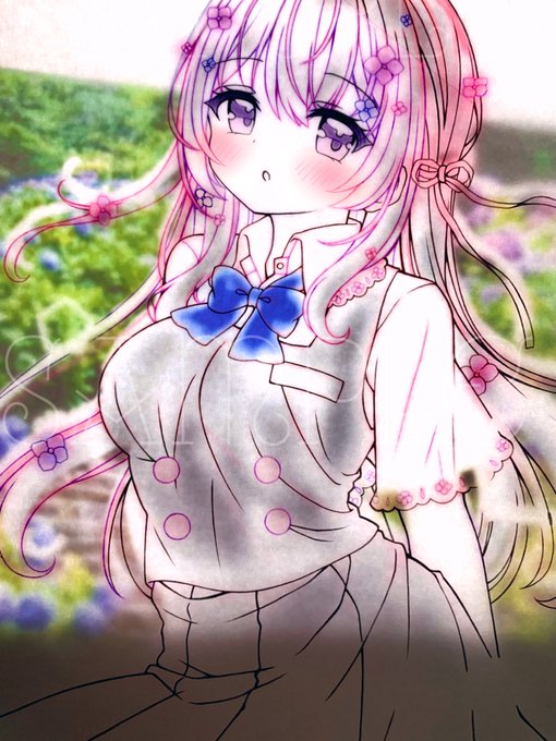 制服塗るの楽しかった🤭💕 お次は背景に紫陽花いっぱい描きます✨ #ときめぐり展 #コピック